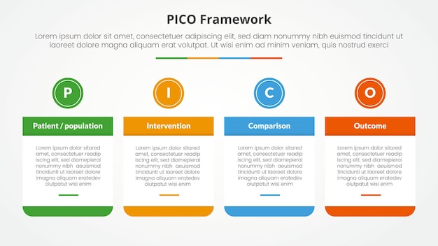 Pico framework infographic concept for slide presentation with long round rectangle box stack with 4 point list with flat style