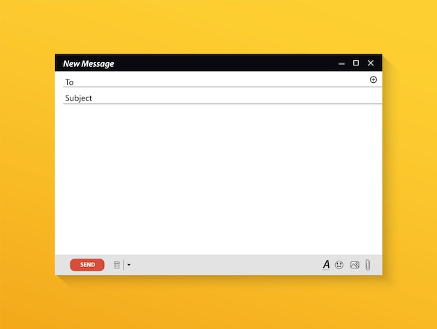 Blank template internet mail frame interface for mail message. Blank email message window template. Email message interface with send form vector template