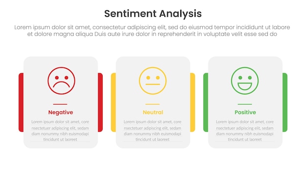 Sentiment analysis infographic 3 point with round shape timeline horizontal for slide presentation