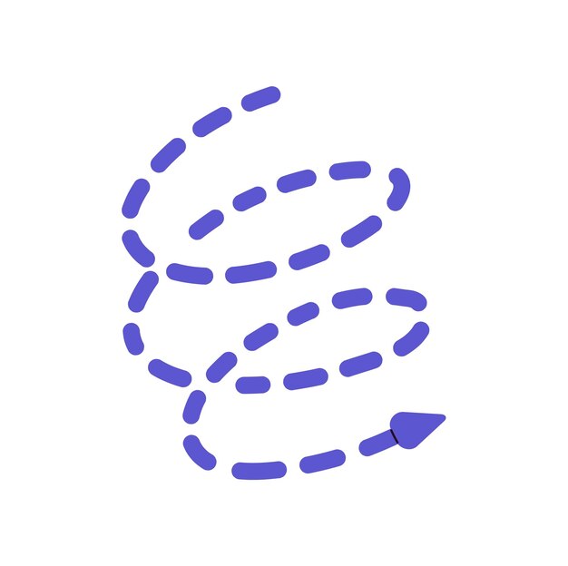 Twisted dashed line with cursor to showing direction bold arrow with loop pointer symbol geometric shape for pointing route way path signpost sign flat isolated vector illustration on white